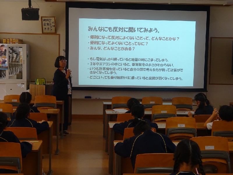 授業では、便利さと昔の不便な暮らしを比べながら考えました。道具がなくても、仲間と力を合わせて過ごす楽しさや、昔の時代には自然が守られていたことに気づき、「便利っていいことばかりではない」ということを理解しました。便利には良い面と悪い面があり、だからこそ上手に付き合う必要がある箏も学びました。