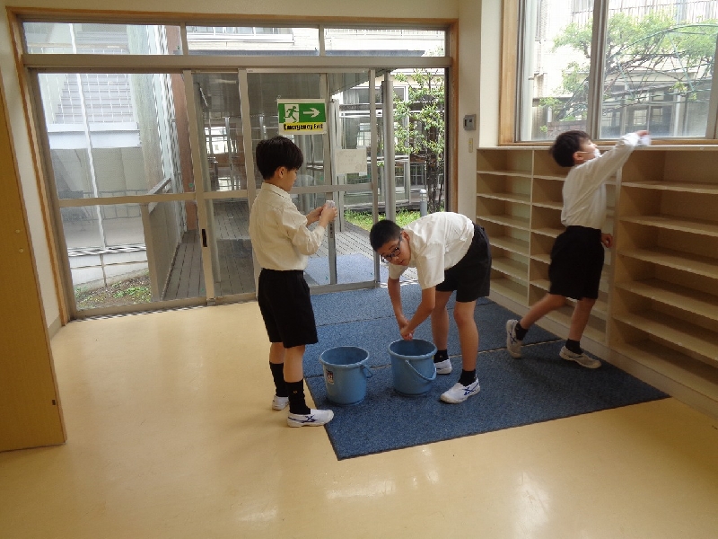 会場となるアリーナや1年生の教室を飾り付けたり、昇降口や靴箱をピカピカに掃除したりしました。