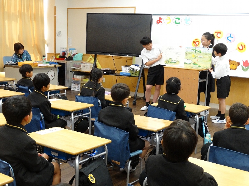 1年生の教室では、6年生がやさしく寄り添いながら、朝の準備や過ごし方をサポートしてくれました。さらに朝の読書の時間には、6年生による絵本の読み聞かせが行われました。お話の内容に関するクイズもあり、1年生は大いに盛り上がり、笑顔あふれるひとときとなりました。