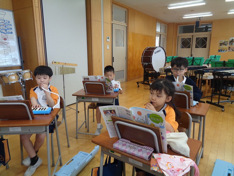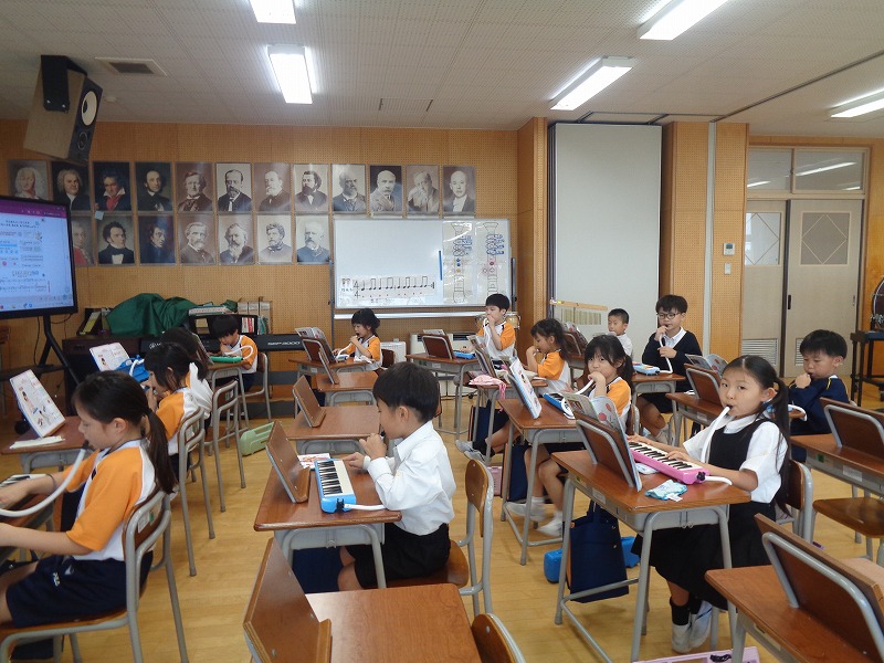 2学期に入って、1年生の音楽では、鍵盤ハーモニカの学習が始まりました。