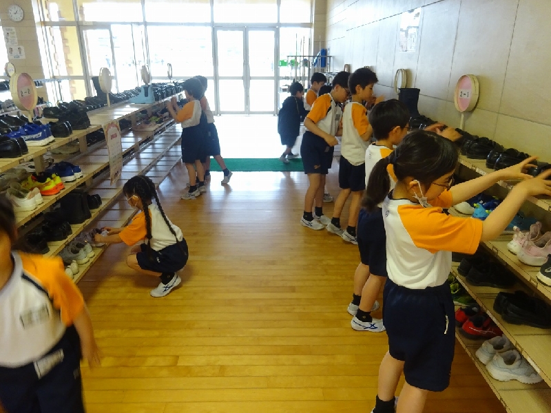 登校後は朝の準備を終えると、教室や廊下の掃除、靴そろえなどのボランティア活動に進んで取り組んでいます。一人ひとりが自分にできることを考え、全校のために行動する姿は、本校のよき伝統を受け継ぐものです。活動後には「気持ちがいいね!」と声を掛け合い、さわやかな気持ちで一日のスタートをしています。