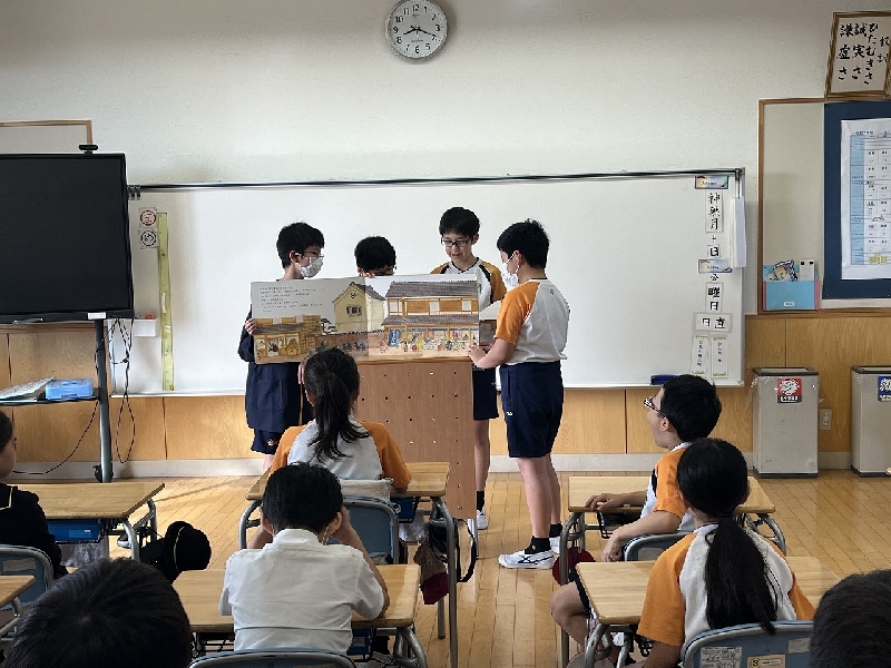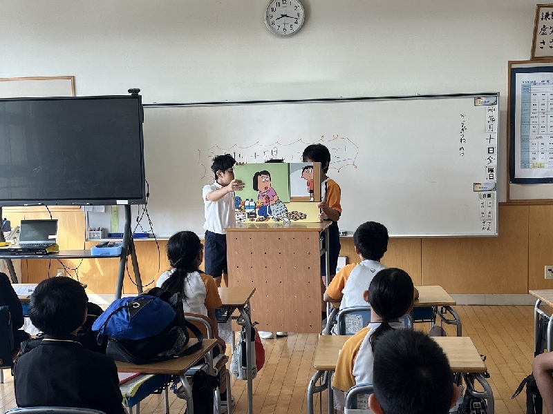 5・6年、15名の図書委員を4つのグループに分け、読み聞かせをしました。物語の内容に合わせて、声色や表情を変えて上手にできました。紙芝居が早く終わったグループは、クイズを出すなど工夫も見られました。