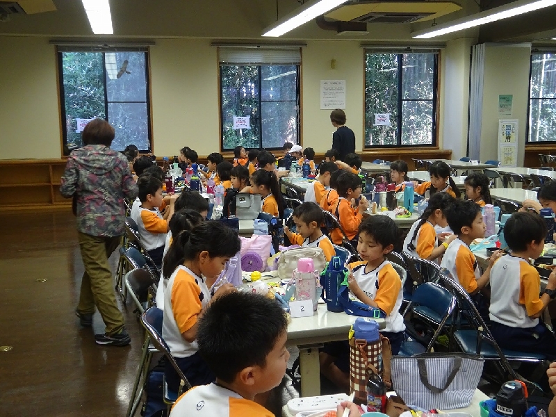 天候にも恵まれ、野外活動では、生き物や秋の植物を散策したり、大きなトランポリンで楽しく遊んだりしました。