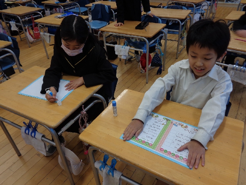 2月の行事である「おもちゃまつり」に向けて、2年生は看板作りや遊び方の説明に取り組んでいます。