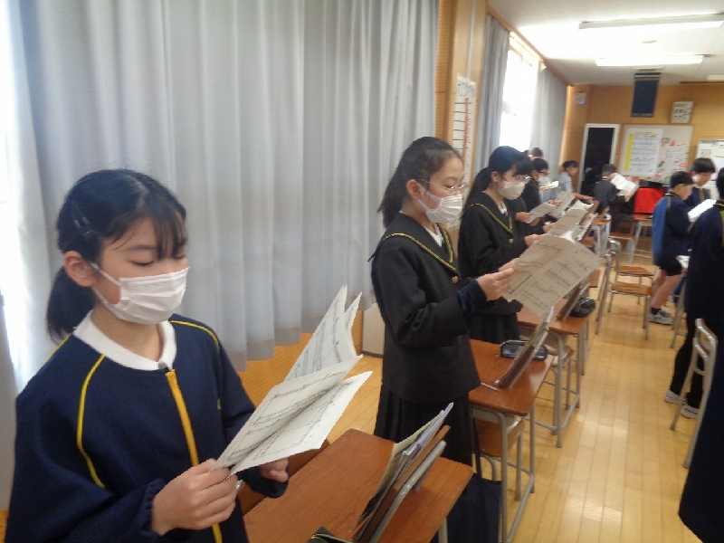 今5年生は、3月9日(月)に行われる「6年生を送る会」に向けて、出しものの歌練習を猛練習中です。