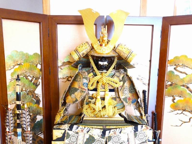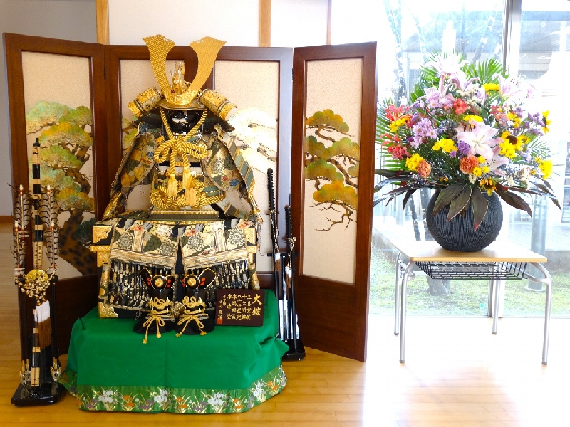 今年も昇降口正面で、立派な兜飾りが子どもたちを迎えています。