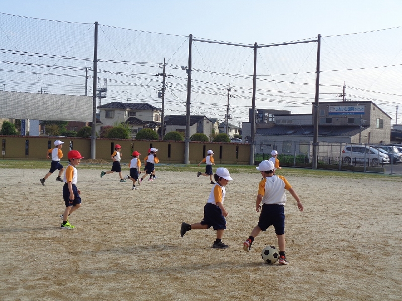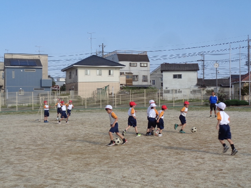 後半は、2個のボールを使って、ゲームをしました。1年生も2年生も一生懸命ボールを追って、パスをしたり、シュートをしたりと、動きのあるゲームができました。来週からは、いろいろなアフタースクールが始まります。上級生と一緒に楽しく活動してほしいと思います。