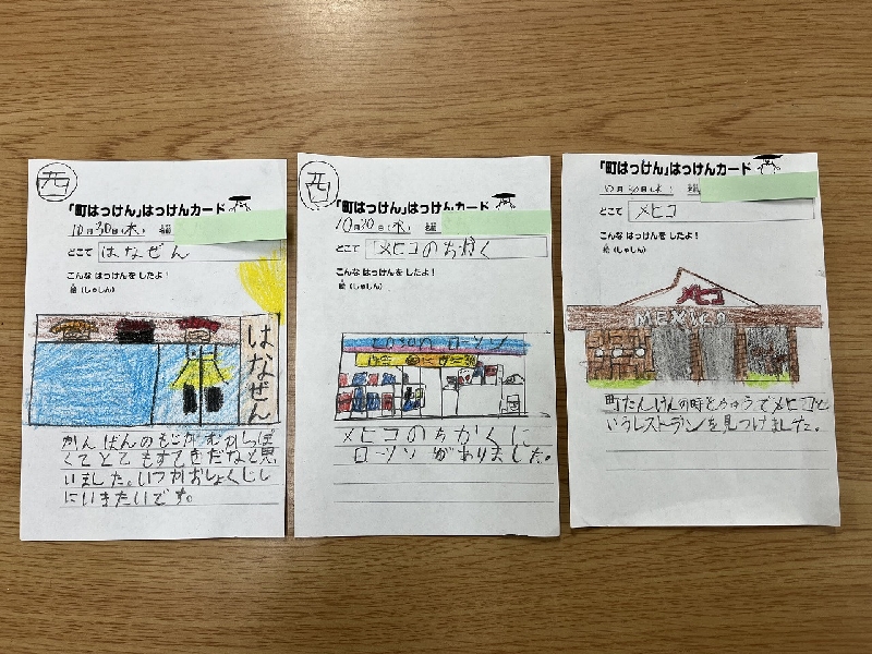 今後は、町探検で見つけたことをクラスごとにまとめていきたいと思います。