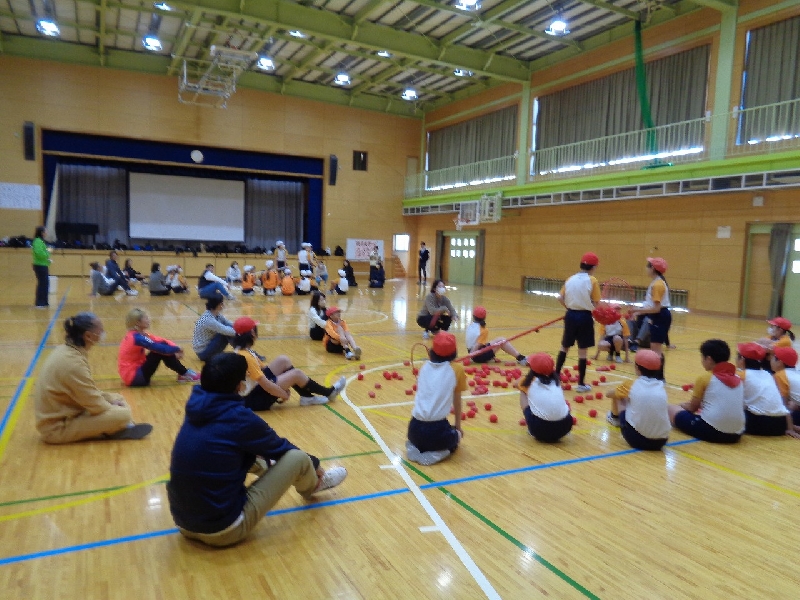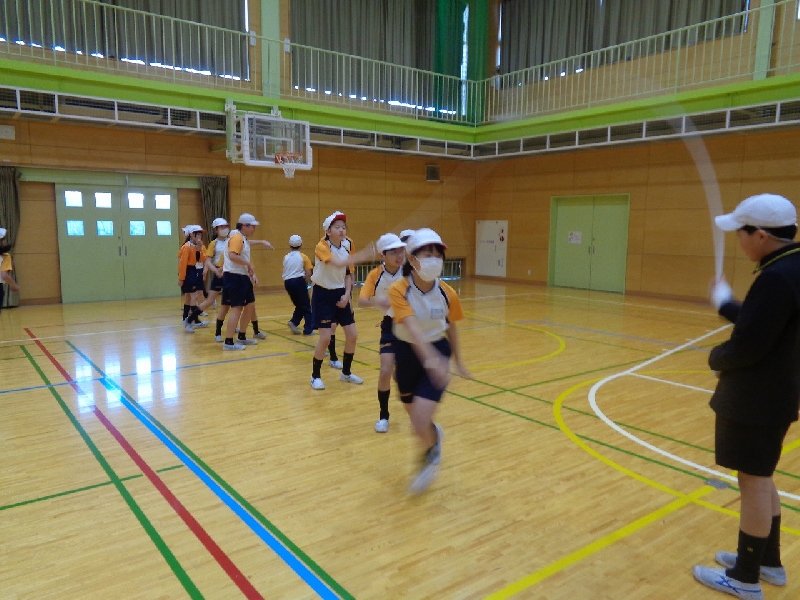 10月31日、合同体育の時間を使って、体育委員会が主催する「みんなで遊ぼう集会」(11月10日:月)のリハーサルを行いました。