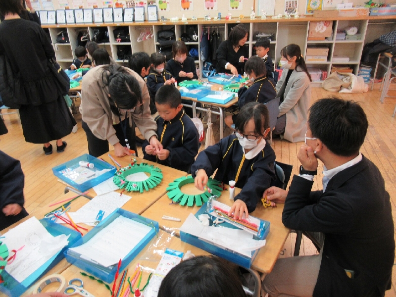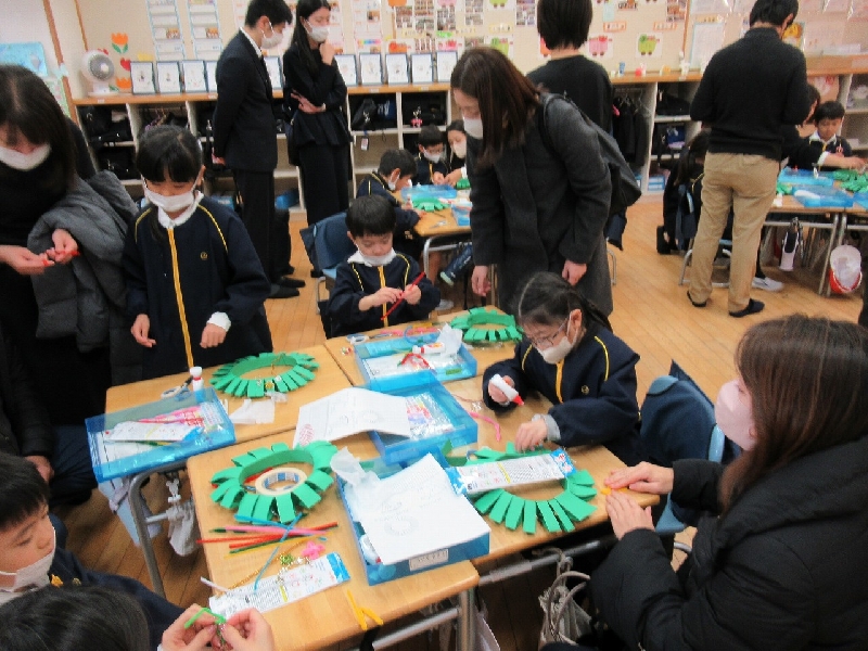 2月の行事である「おもちゃまつり」に向けて、2年生は看板作りや遊び方の説明に取り組んでいます。