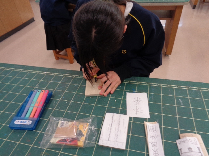 6年生は、小学校生活が残り3ヶ月となり、中学受験に向けてみんなで協力して取り組んでいます。また、少しずつ卒業に向けての準備も始まり、図工の時間には「卒業制作・ペン立て作り」をしています。6年間の思い出をもとに、一人一人考えたデザインを彫刻刀で彫り、色付けをしていきます。完成が楽しみです。