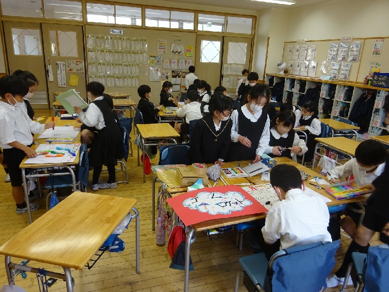 11月10日(月)に行われる、体育委員会主催の「遊ぼう集会」に向けて、サポート隊である6年生が、招待状を作成しました。今日は、朝自習の時間を使い、各教室に招待状を届けに行きました。楽しみにしている下級生の様子に、準備を進めてきた体育委員会と6年生も、より一層やる気が湧いてきました。