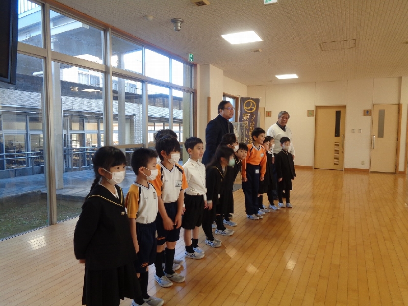 今月の朝の「あいさつ隊」は1年生が担当です。朝の準備をいつもより素早く終わらせ、寒い中、昇降口で元気にあいさつをしています。7月にも1年生が担当で「あいさつ隊」を行いましたが、その頃よりもぐっとお兄さん、お姉さんの顔つきになり、頑張っています。終わった後は靴を揃えるなど、自分から進んで活動している姿は、とても頼もしいです。