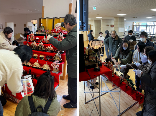立春を迎えてまもなくの2月8日(土)、保護者の会のメンバーが集まり、1階に雛人形を飾りました。